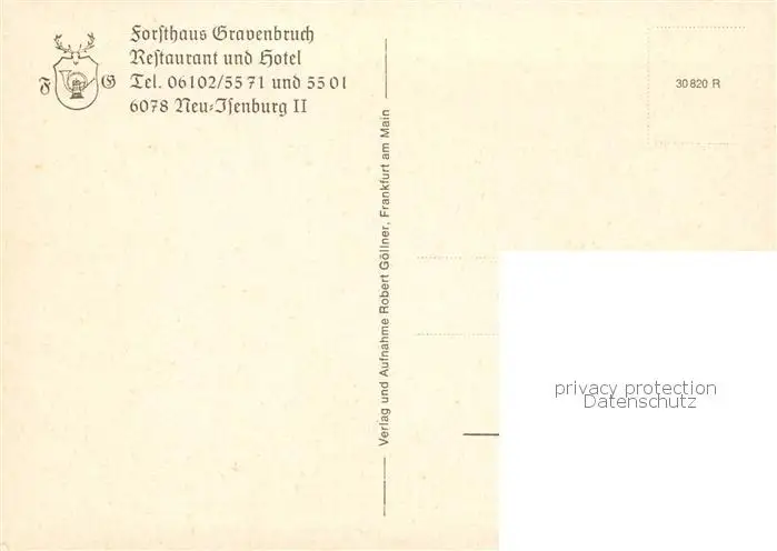 Neu-Isenburg Forsthaus Gravenbruch Restaurant Hotel Gartenterrasse Neu-Isenburg postalisch nicht gelaufen nach 1965 Erhaltung siehe scans [WerneD78] WernPID7