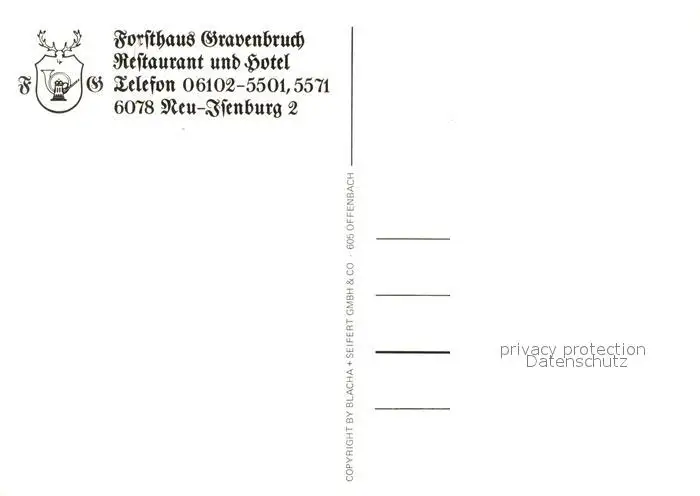 Neu-Isenburg Forsthaus Gravenbruch Restaurant Hotel Neu-Isenburg postalisch nicht gelaufen nach 1965 Erhaltung siehe scans [FriedD77] Frierer