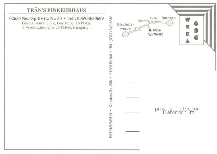 Neu-Spittwitz Traens Einkehrhaus Restaurant Terrasse postalisch nicht gelaufen nach 1965 Erhaltung siehe scans [FriedD77] Frierer