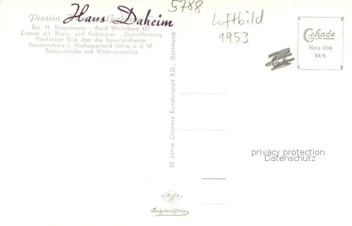 Neuastenberg am Kahlen Asten Neuastenberg postalisch nicht gelaufen 1953 Fliegeraufnahme Erhaltung siehe scans [WerneD78] Fliegeraufnahme WernPID7