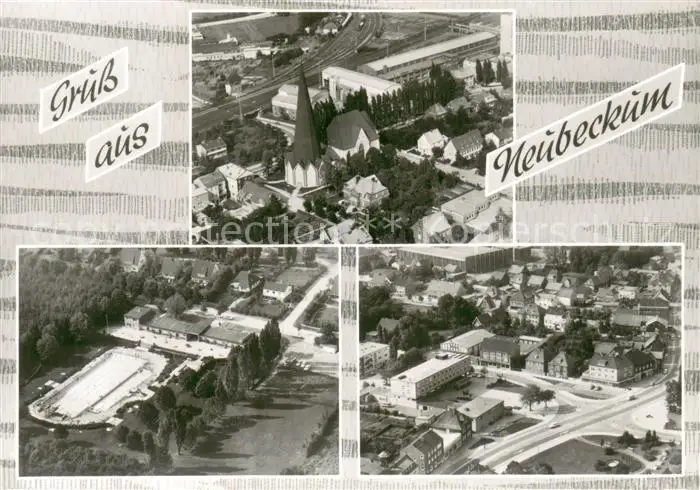 Neubeckum Fliegeraufnahmen mit Kirche und Schwimmbad Neubeckum postalisch nicht gelaufen 1921-1965 Erhaltung siehe scans [WerneD78] WernPID7