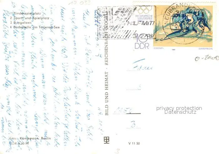 Neubrandenburg Campingplatz Badestelle Tollensesee Spielplatz Bungalows Neubrandenburg postalisch gelaufen 1980 Erhaltung siehe scans [FriedD77] Frierer