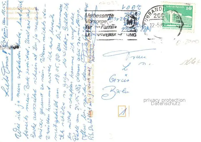 Neubrandenburg Ernst Thaelmann Strasse Neubrandenburg postalisch gelaufen 1988 Erhaltung siehe scans [FriedD77] Frierer