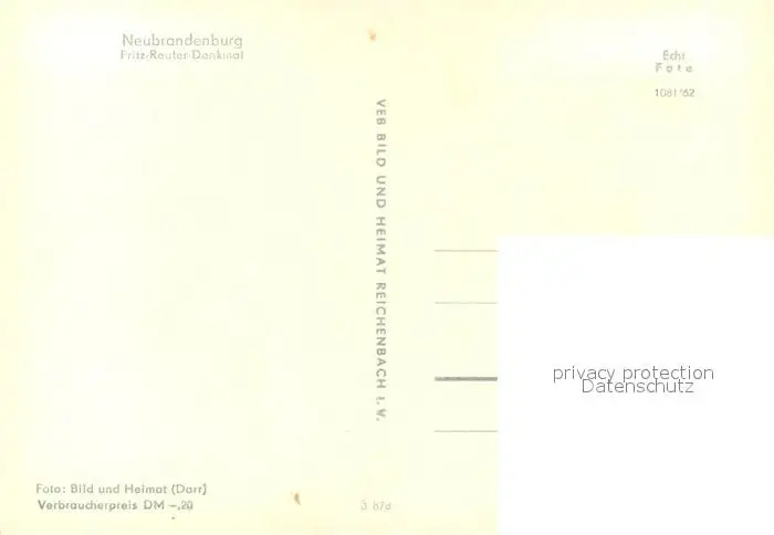 Neubrandenburg Fritz-Reuter-Denkmal Neubrandenburg postalisch nicht gelaufen 1921-1965 Erhaltung siehe scans [NatalD47] NataID47