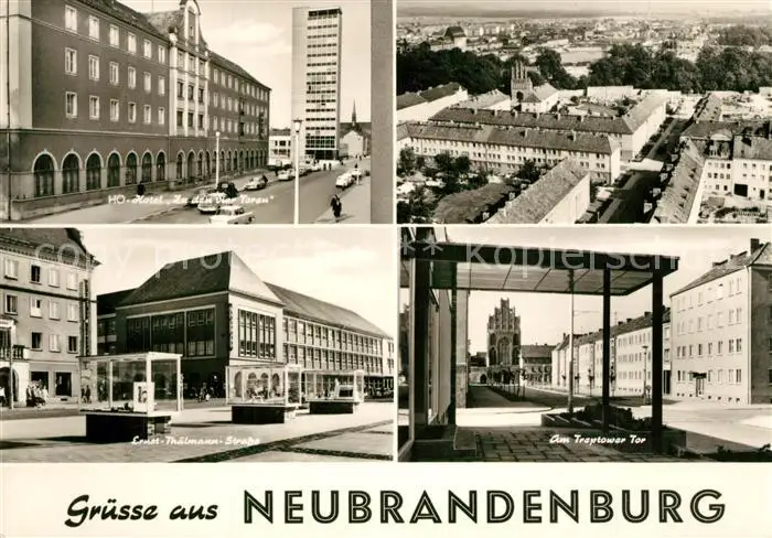 AK / Ansichtskarte Neubrandenburg HO Hotel Vier Tore Hochhaus Stadtpanorama Ernst Thaelmann Strasse Treptower Tor Neubrandenburg