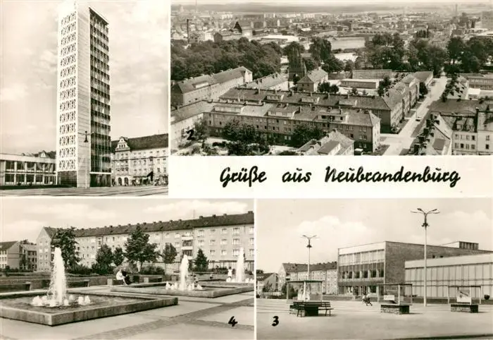 AK / Ansichtskarte Neubrandenburg Haus der Kultur und Bildung Hochhaus Stadtpanorama Karl Marx Platz Wasserspiele Neubrandenburg