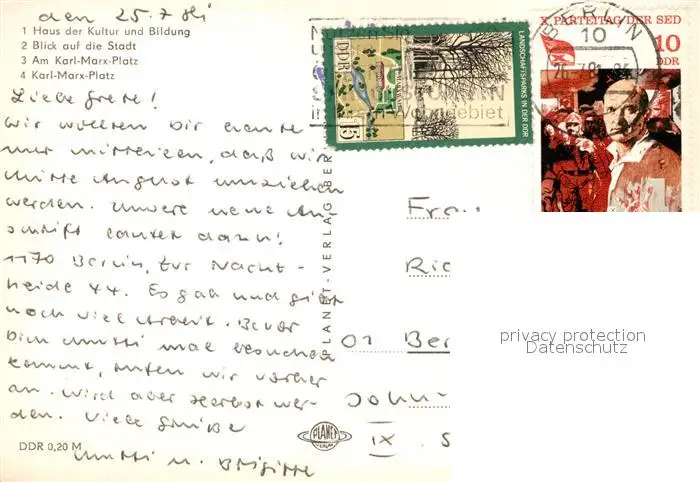 Neubrandenburg Haus der Kultur und Bildung Hochhaus Stadtpanorama Karl Marx Platz Wasserspiele Neubrandenburg postalisch gelaufen 1981 Erhaltung siehe scans [FriedD77] Frierer