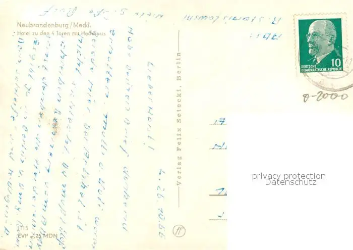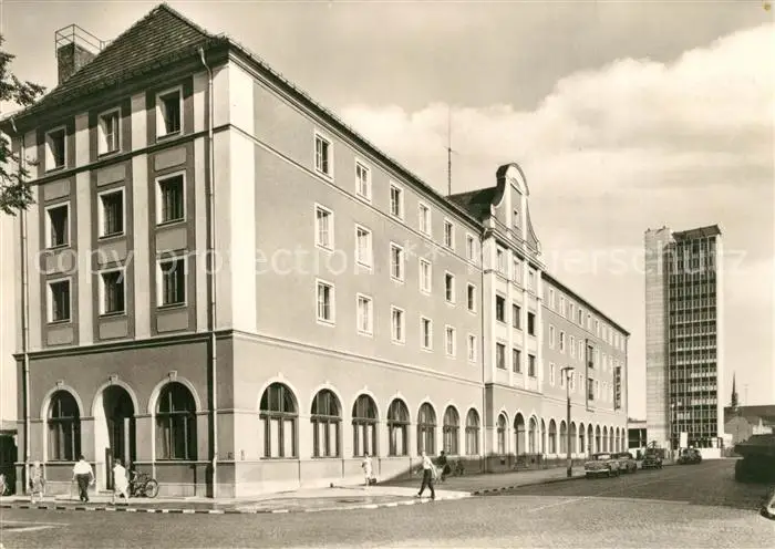 Neubrandenburg Hotel zu den 4 Toren mit Hochhaus Neubrandenburg postalisch gelaufen 1966 Erhaltung siehe scans [FriedD77] Frierer