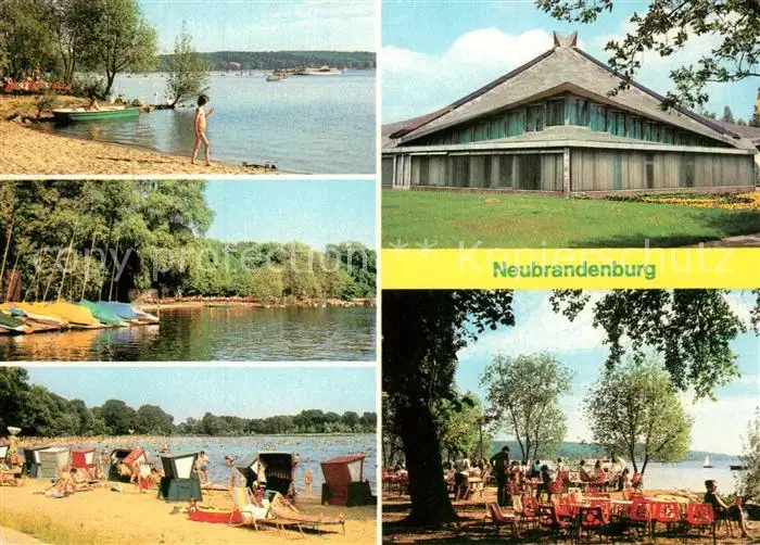 AK / Ansichtskarte Neubrandenburg Kulturpark Tollensesee Bootshafen Freibad Badestrand Stadthalle Kulturpark HOG Badehaus Neubrandenburg