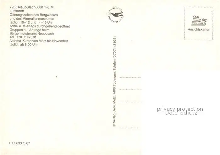 Neubulach Hallaglueckstollen Hauer Azurit Stollenstrecke Neubulach postalisch nicht gelaufen nach 1965 Erhaltung siehe scans [WerneD78] WernPID7