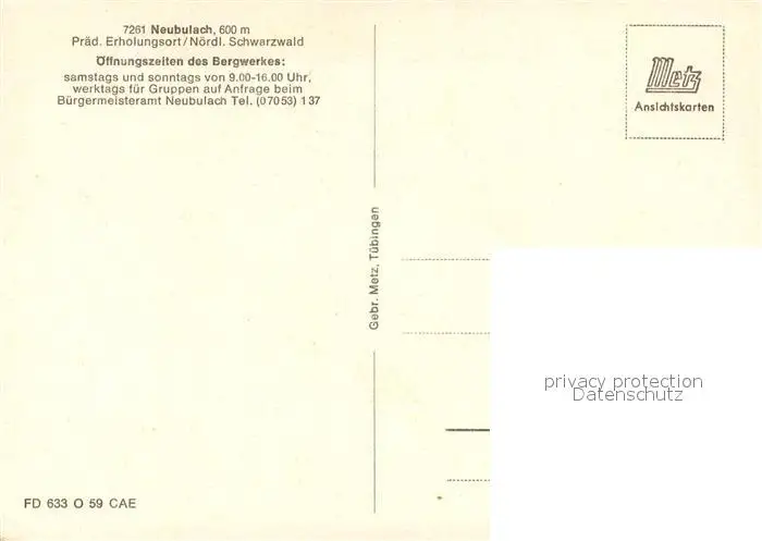 Neubulach Historisches Silberbergwerk Neubulach postalisch nicht gelaufen nach 1965 Erhaltung siehe scans [FriedD77] Frierer