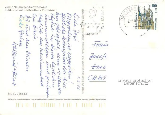 Neubulach Therapiestollen Neubulach Details Neubulach postalisch gelaufen 2002 Erhaltung siehe scans [WerneD78] WernPID7