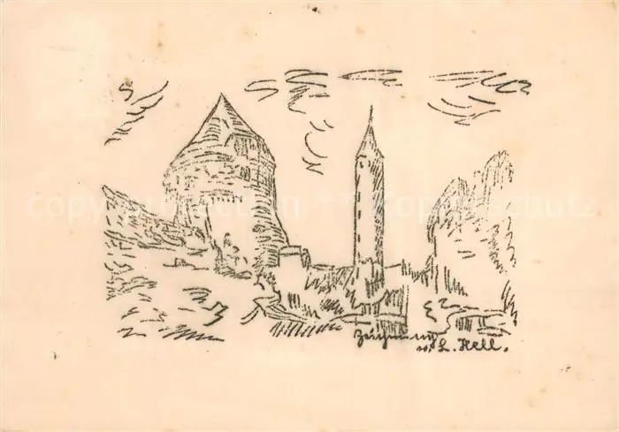 Neuburg__Donau Burg Zeichnung postalisch gelaufen 1921-1965 Erhaltung siehe scans [WerneD78] WernPID7