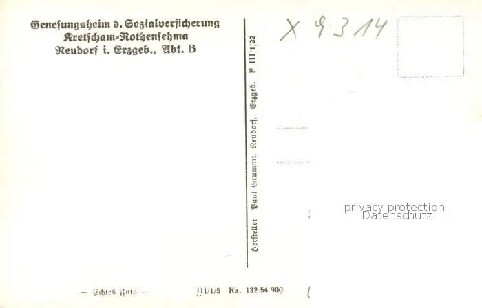 Neudorf_Erzgebirge Genesungsheim der Sozialversicherung Kretscham Rothensehma Neudorf Erzgebirge postalisch nicht gelaufen 1921-1965 Erhaltung siehe scans [FriedD77] Frierer