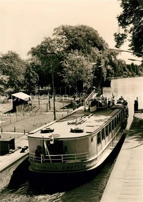 Neue_Muehle_Koenigs-Wusterhausen Schleuse Fahrgastschiff Friedrich Engels Neue_Muehle postalisch nicht gelaufen nach 1965 Erhaltung siehe scans [KathaD81] Kathoren