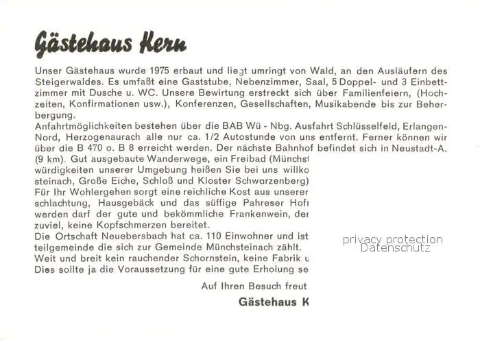 Neuebersbach Gaestehaus Kern Gastraeume Gaestezimmer Neuebersbach postalisch nicht gelaufen nach 1965 Werbekarte (keine Postkarte) Erhaltung siehe scans [WerneD78] Werbekarte (keine Postkarte) WernPID7