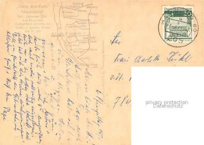 Neuendeich Gasthaus Aal-Kate Neuendeich postalisch gelaufen 1971 Fliegeraufnahme Erhaltung siehe scans [FriedD77] Fliegeraufnahme Frierer