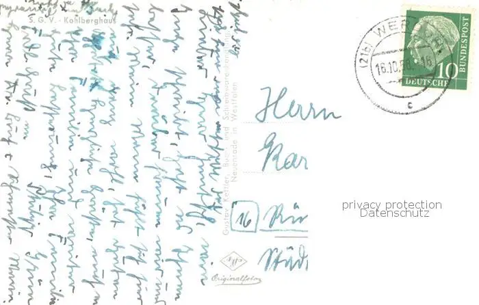 Neuenrade Kohlberghaus Neuenrade postalisch gelaufen 1958 Fliegeraufnahme Erhaltung siehe scans [FriedD77] Fliegeraufnahme Frierer