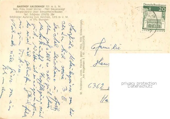 Neuenweg Gasthof Haldenhof Teilansichten m. Nonnenmattweiher u. Strohmeyers Gedaechtsniskapelle Neuenweg postalisch gelaufen nach 1965 Erhaltung siehe scans [LiesaD40] LiesID40