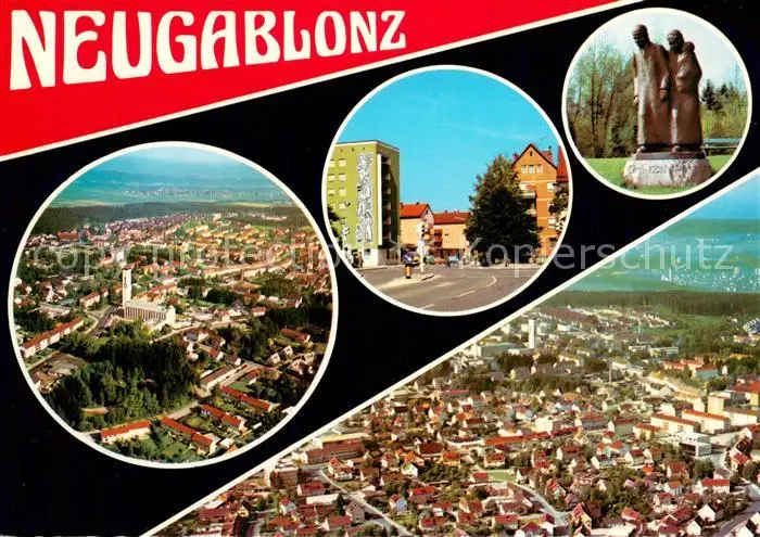 AK / Ansichtskarte Neugablonz Stadtzentrum Denkmal Statuen Fliegeraufnahmen Neugablonz