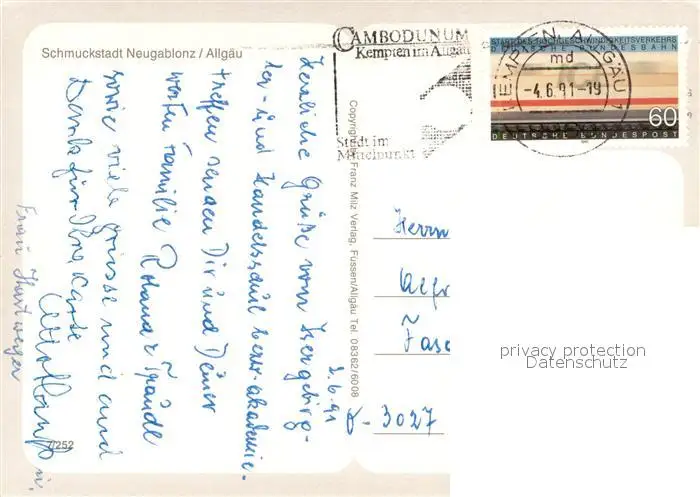 Neugablonz Teilansichten Schmuckstadt Denkmal Kirche Neugablonz postalisch gelaufen 1991 Erhaltung siehe scans [FriedD77] Frierer