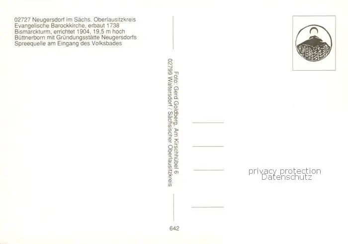 Neugersdorf_Sachsen Ev Barockkirche Bismarckturm Buettnerborn mit Gruendungsstaette Spreequelle am Eingang des Volksbades Neugersdorf Sachsen postalisch nicht gelaufen nach 1965 Erhaltung siehe scans [WerneD78] WernPID7