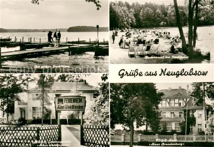 AK / Ansichtskarte Neuglobsow Am grossen Stechlinsee Badestrand FDGB Ferienheim Haus Waldfrieden FDGB Ferienheim Haus Brandenburg Neuglobsow