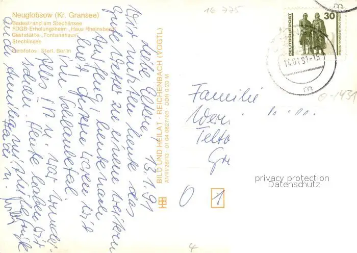 Neuglobsow Badestrand Stechlinsee FDGB Erholungsheim Haus Rheinsberg Gaststaette Neuglobsow postalisch gelaufen 1981 Erhaltung siehe scans [FriedD77] Frierer