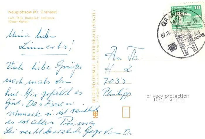 Neuglobsow Erholungsheim Haus Hirschberg Neuglobsow postalisch gelaufen nach 1965 Erhaltung siehe scans [LiesaD40] LiesID40