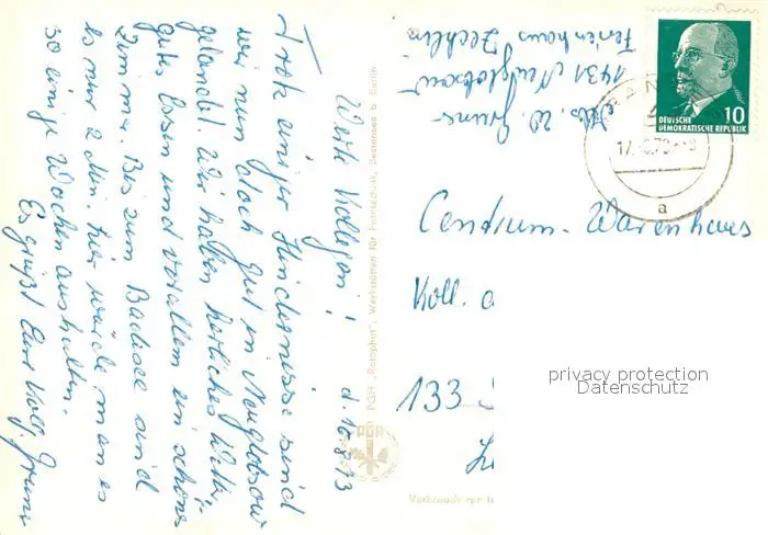 Neuglobsow Haus Waldfrieden Freiterrasse Neuglobsow postalisch gelaufen 1973 Erhaltung siehe scans [WerneD78] WernPID7