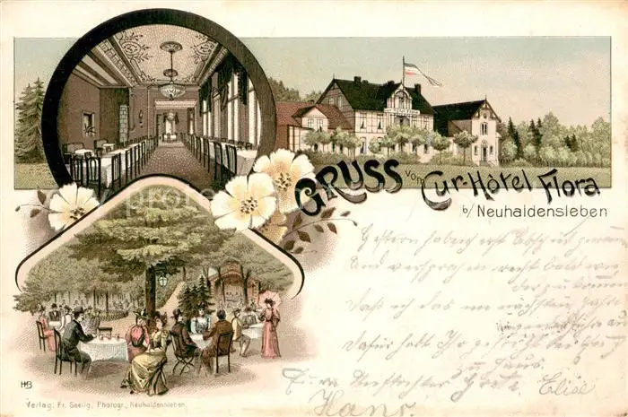 Neuhaldensleben Cur Hotel Flora Gartenterrasse Speisesaal Neuhaldensleben postalisch gelaufen 1897 Erhaltung siehe scans [WerneD78] WernPID7
