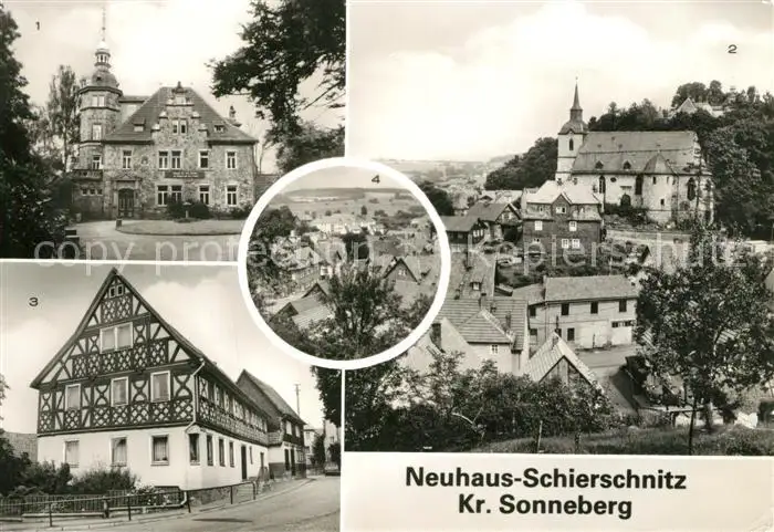 AK / Ansichtskarte Neuhaus Schierschnitz Schloss Teilansichten Gemeindebibliothek Neuhaus Schierschnitz