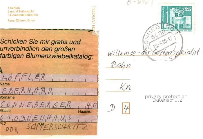 Neuhaus-Schierschnitz Schloss Teilansichten Gemeindebibliothek Neuhaus-Schierschnitz postalisch gelaufen 1990 Erhaltung siehe scans [WerneD78] WernPID7
