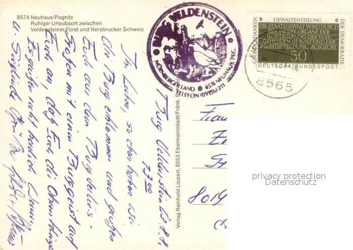 Neuhaus_Pegnitz Stadtmauer Kirche Burg Veldenstein Neuhaus Pegnitz postalisch gelaufen nach 1965 Erhaltung siehe scans [FriedD77] Frierer
