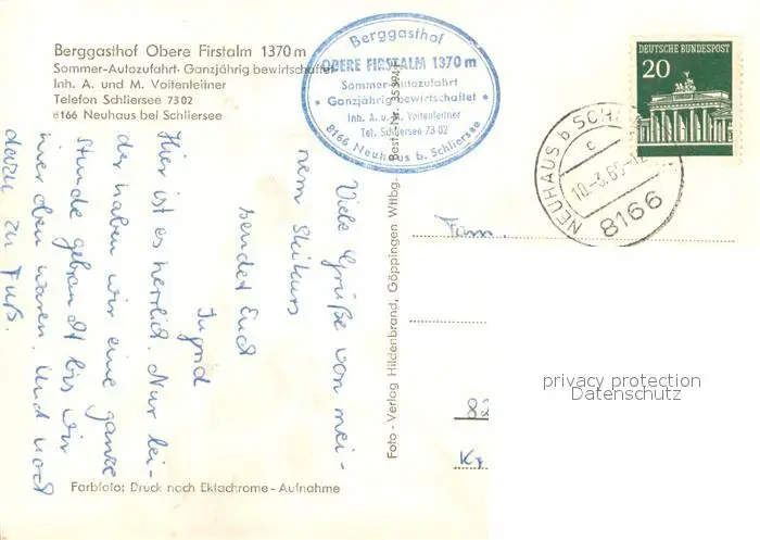 Neuhaus_Schliersee Berggasthof Obere Firstalm Bodenschneid Krettenburg Miesing Taubenstein Rotwand Neuhaus Schliersee postalisch gelaufen 1969 Erhaltung siehe scans [FriedD77] Frierer