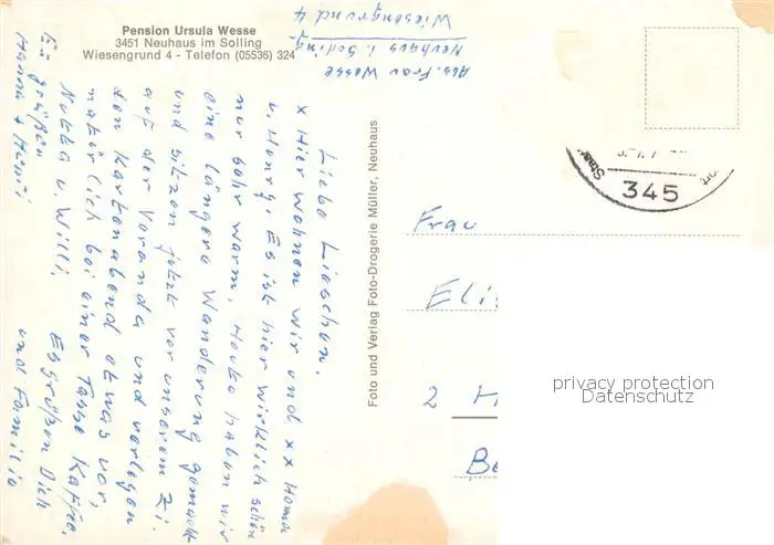 Neuhaus_Solling Pension Ursula Wesse Neuhaus Solling postalisch gelaufen nach 1965 Erhaltung siehe scans [WerneD78] WernPID7