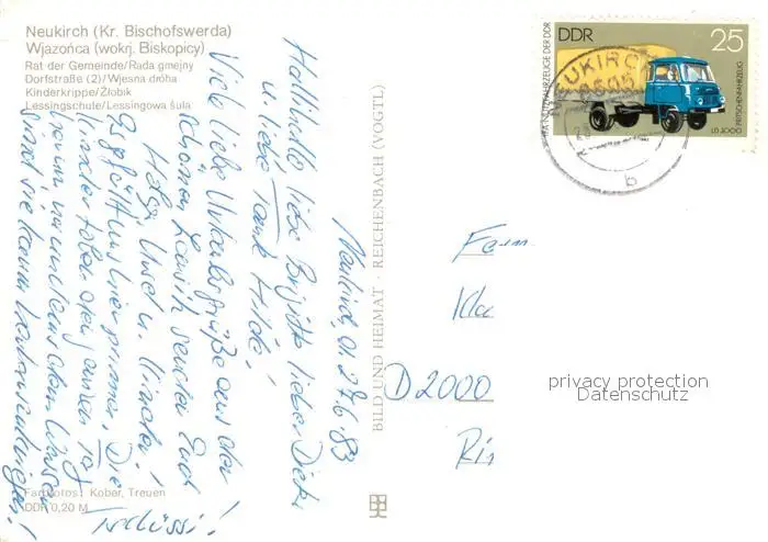 Neukirch_Bischofswerda Rat der Gemeinde Dorfstrasse Kinderkrippe Lessingschule Neukirch Bischofswerda postalisch gelaufen 1983 Erhaltung siehe scans [FriedD77] Frierer