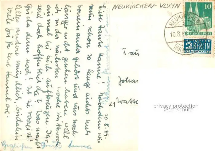 Neukirchen-Vluyn Gemeinde Sparkasse Neukirchen-Vluyn postalisch gelaufen 1949 Erhaltung siehe scans [WerneD78] WernPID7