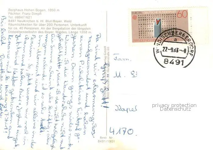 Neukirchen_Heilig_Blut Berghaus Hohen Bogen Unterkunft Gaststube Sesselbahn Neukirchen_Heilig_Blut postalisch gelaufen 1983 Erhaltung siehe scans [WerneD78] WernPID7