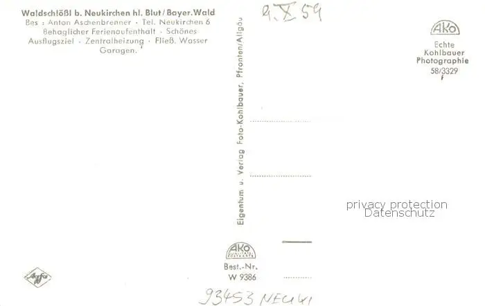 Neukirchen_Heilig_Blut Gasthof und Pension Waldschloessl Neukirchen_Heilig_Blut postalisch nicht gelaufen 1959 Erhaltung siehe scans [WerneD78] WernPID7