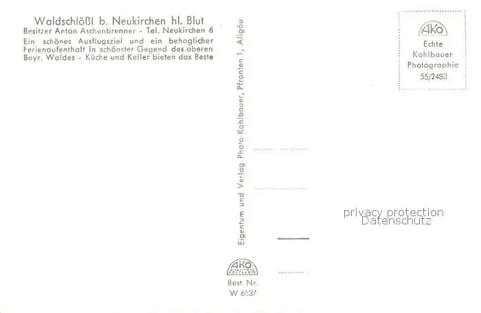 Neukirchen_Heilig_Blut Waldschloessl Ausflugsziel Gaststaette Neukirchen_Heilig_Blut postalisch nicht gelaufen 1955 Erhaltung siehe scans [FriedD77] Frierer