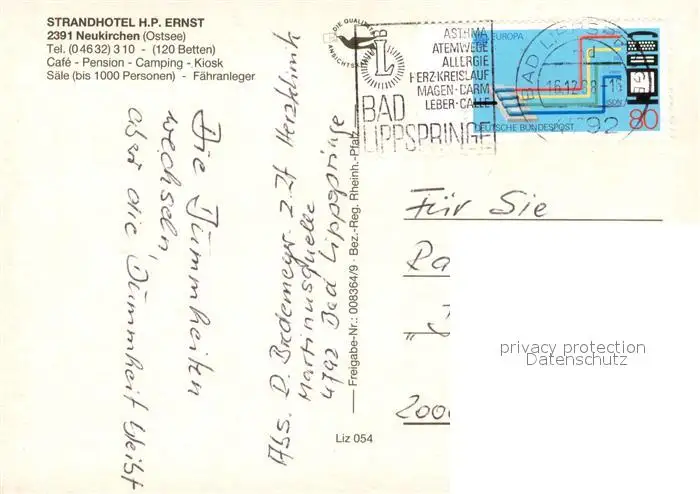 Neukirchen_Oldenburg Strandhotel Ernst Campingplatz Fliegeraufnahme Neukirchen Oldenburg postalisch gelaufen 1988 Erhaltung siehe scans [FriedD77] Frierer