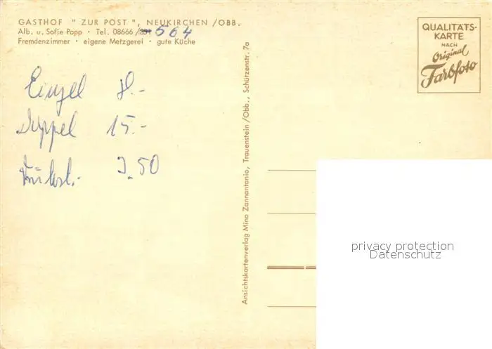 Neukirchen_Straubing-Bogen Gasthof Zur Post Restaurant Gesamtansicht mit Alpenpanorama Neukirchen postalisch nicht gelaufen nach 1965 Erhaltung siehe scans [FriedD77] Frierer
