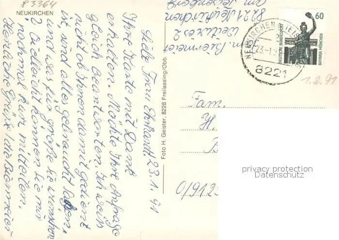 Neukirchen_Teisenberg Panorama Freibad Kirche Strassenpartie Maibaum Neukirchen Teisenberg postalisch gelaufen 1991 Erhaltung siehe scans [FriedD77] Frierer