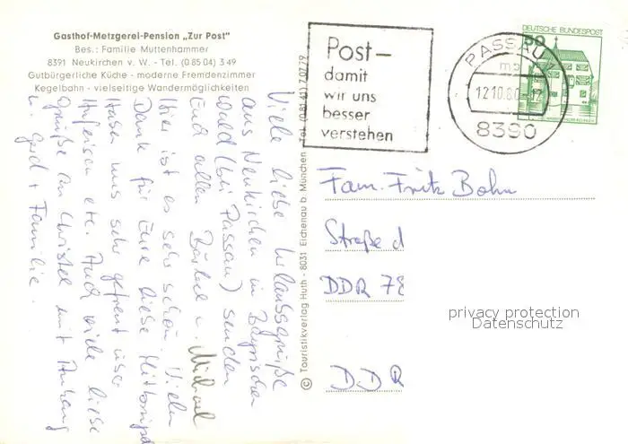 Neukirchen_Wald Gasthof Pension Zur Post Treppenaufgang Hallenbad Garten Pony Neukirchen Wald postalisch gelaufen 1980 Erhaltung siehe scans [FriedD77] Frierer