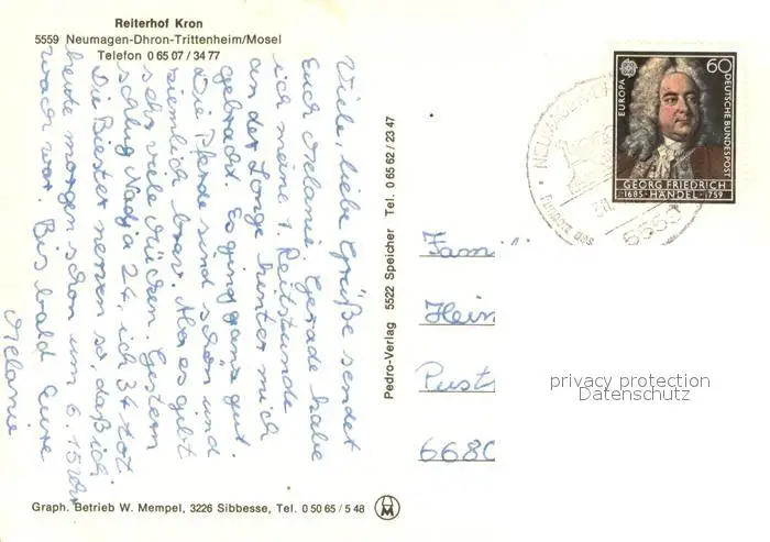 Neumagen-Dhron Reiterhof Kron Koppel Reithalle Springen Bar Neumagen-Dhron postalisch gelaufen nach 1965 Erhaltung siehe scans [WerneD78] WernPID7
