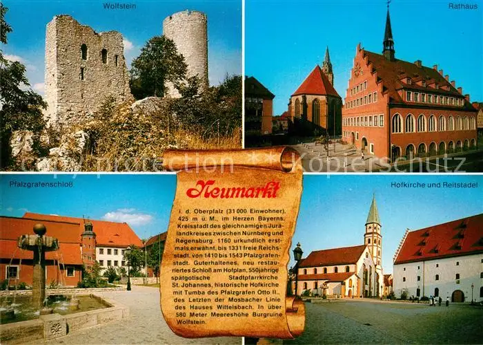 AK / Ansichtskarte Neumarkt_Oberpfalz Wolfstein Rathaus Pfalzgrafenschloss Hofkirche und Reitstadel Neumarkt Oberpfalz