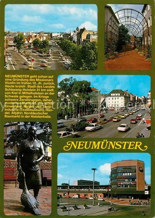 AK / Ansichtskarte Neumuenster_Schleswig Holstein Stadtblick Atrium Gaenseliesel Statue Rathaus Neumuenster