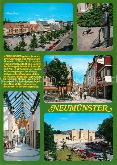 AK / Ansichtskarte Neumuenster_Schleswig Holstein Stadtblick Gaenseliesel Statue Fussgaengerzone Rathaus Neumuenster