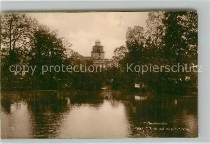 Neumuenster_Schleswig-Holstein Teich Vicelin Kirche Neumuenster postalisch gelaufen 1921-1965 Erhaltung siehe scans [KathaD81] Kathoren